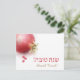 A postcard with a watercolor pomegranate illustration and a 'Shanah Tovah' greeting.