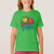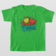 A vibrant shamrock green t-shirt for teenagers celebrating Rosh Hashanah features the caption "Shana Tova" in a lively, festive red and blue font. Above the text, two charming apples—one red and one yellow—are depicted. The combination of the bright green fabric and the colorful apples creates a joyful and eye-catching design, perfect for marking the holiday with style and cheer.