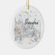 Lightweight, smooth, pure white ornament with nice sheen. Perfect size to be seen from across the room ... and to attract closer inspection! Price was great for ordering enough for the whole family! Clear, bold black design just as requested. Matches the order exactly. Just so nice!