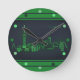 Shanghai Skyline Green Neon Look Cityscape Wall Round Clock