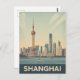 This stylish card features a vintage-style illustration of the iconic Shanghai skyline. The design captures the majestic Oriental Pearl Tower and the modern skyscrapers of the Pudong district, all from across the Huangpu River. The soft, muted color palette and retro typography give it the feel of a classic travel poster, perfect for a note from your travels or a gift for a city lover.
