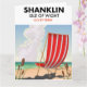 Shanklin beach Isle of wight "Go By Ferry" vintage style beach poster with a striped deck chair.