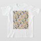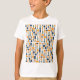 This kid's t-shirt has a mid-century modern design of ovals and rectangles in patterns repeating in the design.