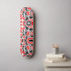 A skateboard with an unusual abstract design made up of strange surreal shapes in red and black. Inspired by retro modern design.