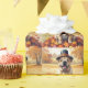 A watercolor-style painting of a cheerful dog sitting amidst a pile of vibrant fall leaves, surrounded by tiny pumpkins and scattered acorns. The dog wears a little pilgrim hat and beams with joy, capturing the spirit of Thanksgiving. In the background, soft harvest fields and golden-hued trees create a peaceful countryside ambiance. Gentle textures and warm, muted autumn tones give the scene a cozy, nostalgic feel perfect for celebrating the beauty of the season.