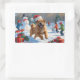 Shar Pei Running in Snow with Christmas Hat Rectangular Sticker