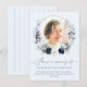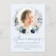This is an elegant blue floral celebration of life "Share a memory" card. The design features a beautiful calligraphy font and a blue and white floral and greenery wreath around a personalised photo. Allow your guests to share a wonderful memory of your loved one with you as a treasured keepsake. Please contact the designer for any queries regarding this design or for any matching products.