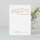 This card features title 'share a memory' in real rose gold foil modern calligraphy font style and details in real rose gold foil modern sans serif font style on white background.
