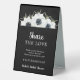 Let bridal shower guests know to share the love by adding your personal #HASHTAG to their photos. Your details are featured in chic white lettering on a background and elegant watercolor of black and white anemone flowers and leaves on black. MATCHING items in our store.