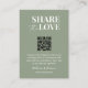 Introducing our "Custom QR Code Wedding Photo Sharing Card" – featured here in a small card size (see other size options) - a personalized and convenient way to encourage guests to share their photos from your special day. This card features a custom QR code that guests can scan to easily access your wedding photo sharing platform. Customize every detail to make this card uniquely yours. Sage Green and white design which you can personalize with a message alongside the QR code. The custom QR code makes it simple for guests to share their photos, ensuring you capture every precious moment from your celebration. Perfect for enhancing your wedding experience and capturing memories, this photo sharing card seamlessly blends style with functionality. Make a statement with this uniquely designed card that adds a touch of convenience to your wedding photo sharing efforts.