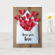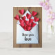 This Valentine's Day card shows an overhead view of a white paper envelope resting on a warm wooden surface. The envelope is open, and a stream of folded red paper hearts spills out, with a few scattered nearby as if they just slid across the table. Each heart has a center crease that gives it a slightly raised, 3D look, catching light and shadow in a simple, handmade way. On the lower part of the envelope, the card reads “Share your love” in a smooth script style that feels like neat handwriting. The bright red hearts stand out strongly against the white envelope and the brown wood background, keeping the focus on romance and kindness. The overall scene feels cozy and thoughtful, like leaving a sweet note for someone you care about ❤️💌🍫. Pass along warm feelings and affection this Valentine’s Day.