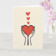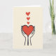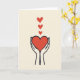 This design shows two simple black-outlined hands gently holding a large red heart right in the center. Above it, three smaller red hearts float upward, getting smaller as they rise, like love being shared and spreading out 💘. The hearts look smooth and bright, while the lines of the hands are calm and steady, giving the whole scene a caring, quiet feel. The background is a soft beige, which makes the red hearts stand out clearly. There isn’t any text on the card, so the picture carries the whole message on its own. Overall, it feels like a sweet moment of giving, support, and affection ❤️.