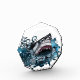Original design of a shark coming out of the water. Created using pencils, pens and colored in Photoshop.