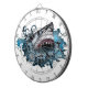 Original design of a shark coming out of the water. Created using pencils, pens and colored in Photoshop.