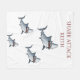 White fleece blanket with sharks and personalized name.