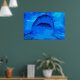 Manipulated digital image of a shark passing overhead from an original photograph by GiftsBonanza. Shades of aqua and blue of the water blend with the colors of the shark. sgb01