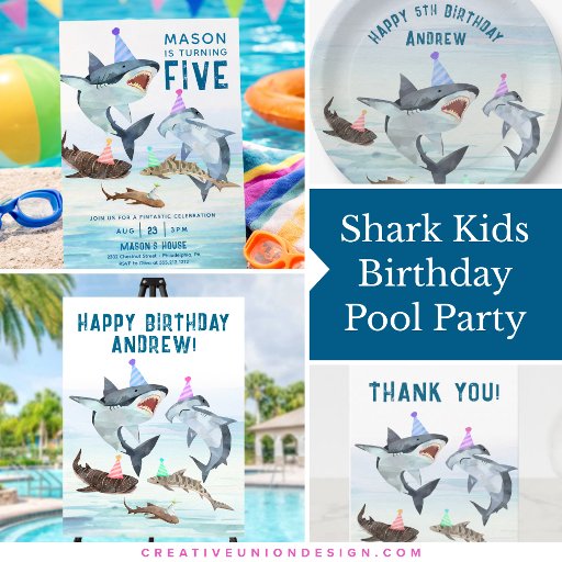 Shark Birthday Invitation Pool Party Banner