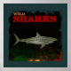 Cool printed illustration about sharks for your room or office walls. An image of a shark fish and a black grunge background with the words "wild sharks" in a red color font. An exclusive mixedworld creation only sold here