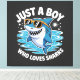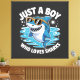 Cute design featuring a humorous quote about sharks, celebrating a boy's affection for these fascinating sea creatures.