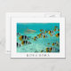 Postcard of a blacktip reef shark chasing butterfly fish during scuba diving the clear blue lagoon of the pacific island of Bora Bora, near Tahiti in French Polynesia with a white border and the text: 'Bora Bora'.