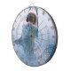 A shark jumping in the ocean on this dartboard dart board