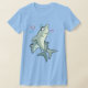 Two sharks intertwined with hearts all around on the front of the shirt and heart on the back.