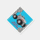 I hope you'll enjoy this racing checkered flag on a bright blue background with a shark monster truck.