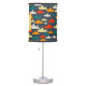Simple but sweet shark pattern lamp in navy, teal, red, orange, yellow and grey with monogram initial.