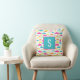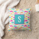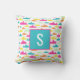 Simple but sweet shark pattern pillow in aqua, pink, orange, yellow and mint green with monogram initial.