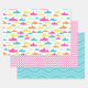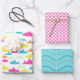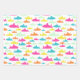 Simple but sweet shark pattern wrapping paper in aqua, pink, orange, yellow and mint green. Includes