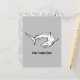 Shark icon with custom text. Sharks and hooks icons seamless pattern at the back.