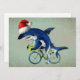 Shark Riding a Bicycle With Santa Hat Holiday Card