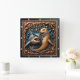 This highly dimensional square wall clock features a bold illustration of a gray shark with an open, toothy mouth and a happy, smiling orange-brown seal swimming together. The entire design is rendered in muted brown, blue, and tan tones, strongly suggesting a deep carved relief or Engraved Wood Look, despite the aquatic subject. The shark is partially concealed by the seal, and the background is a mix of swirling dark blue water and intricate brown coral or tree roots. The composition emphasizes the contrast between the fearsome shark and the cheerful seal. The large, three-dimensional embossed text "BESTIES For LIFE" is carved across the top. The clock face features a simple clock face border with large, white, numbered tick marks (1 to 12) integrated into the outer frame. The artwork is surrounded by a thick, dark brown decorative border that resembles a black wood frame.