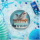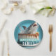 Birthday paper plates featuring a shark / Jaws birthday cake with "Happy Birthday", all-caps bold font. Personalize it by adding your name(s).