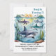 Make a splash for your little boy’s birthday with this bold underwater shark design! Featuring a group of sharks swimming in the ocean with seaweed, rocks, and a setting sun, this invitation is perfect for a shark, ocean, or under-the-sea themed birthday party. Fun, adventurous, and full of ocean vibes—just right for your shark-loving birthday boy.