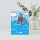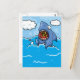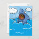 Featuring an awesome cartoon Great White Shark with a red and yellow birthday present balanced on his tongue in a choppy blue sea.