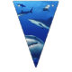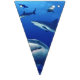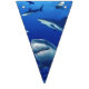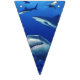 Banner flags shown with a photo print of sharks.