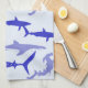 Whale shark, Hammerhead, Mako and Great White sharks in blue pattern.
