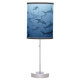 Sharks Table Lamp. Featuring a school of hammerhead sharks swimming together somewhere out there in the deep ocean. The lamp has a bold modern look and the contrast of color is sharp and clear. The unique design makes it a great decorative piece guaranteed to bring elegance to any spot of your home.