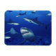 Magnet shown with a photo print of sharks in the deep sea. Customize this item or buy as is. Stock Image