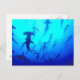 Sharks Postcard contains a photo of a school of Hammerhead Sharks swimming.