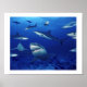 Poster shown with a white border and a photo print of sharks in the deep sea. Customize this item or buy as is. Stock Image