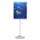 I have purchased other similar lamps. I use them as extra light for guest's. They are inexpensive, easy to assemble and good height for reading. I like that there are many pre-made shades to choose from and that, like this one, you can use your own art.