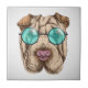 This design features a portrait of a Sharpei dog wearing teal tinted glasses.