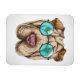 This design features a portrait of a Sharpei dog wearing teal tinted glasses.
