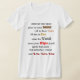 My overall review is that the T-shirt is nice, it fits true to size however the font is significantly smaller than advertised and you can't read it. The printing is unreadable and there is a strain to read it. It does not look like the advertised product. Maybe the shirt color is darker or a larger more visible font should have been used. Photos with and without flash and font is barely legible.