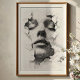 This deeply emotive black and white portrait captures a human face in a moment of profound introspection or raw vulnerability, rendered with an extraordinary etched and line art technique. The detailed lines create a textured, almost topographical map of the face, with eyes closed in a gesture of contemplation or release. What makes this piece truly unique is the surrounding "shattered" or "torn paper" effect, as if the image is breaking through a surface, adding layers of conceptual depth and visual drama. The monochrome palette accentuates the intricate detail and stark contrasts, highlighting the expressive contours and the raw emotion conveyed. This captivating artwork is perfect for those who appreciate powerful figurative art, unique illustration styles, and a piece that speaks to inner worlds.