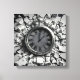 The shattered pieces, stark white against the dark background, create a sense of violent disruption and fragmentation, contrasting with the watch's apparent serenity. The arrangement of these pieces suggests an explosion or disintegration, with the watch positioned as the singular, unaffected element at the focal point. The lighting is dramatic, highlighting the textures of both the watch and the fragments, creating a chiaroscuro effect that adds depth and intrigue to the image.