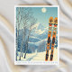 Hello from the snowy mountains of Shawnee Mountain Pennsylvania, Pocono Mountains! We hope you're having a wonderful ski vacation. This postcard features a gorgeous blue-grey mountain landscape with retro ski boards in an orange tribal pattern.