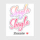 Shayla name in cursive script font lettering. Two copies. One copy is pastel gradient of yellow, orange, pink and blue. One copy in deep red-pink.